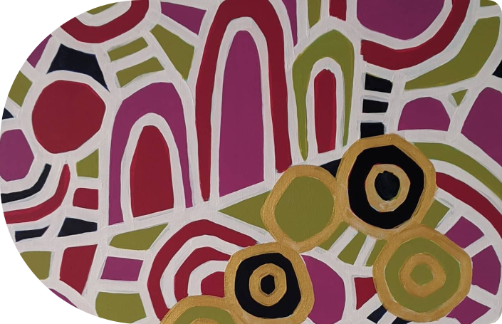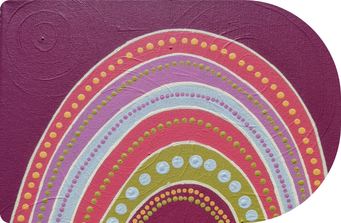 Karen is emerging artist whose work is influenced aesthetically by her local environment exploration of other environments. She draws on the colour and patterns in nature. All subject matter of the native flora and fauna in her art has elements of aboriginal art symbols, incorporated into the patterns or alone in the design of pieces.