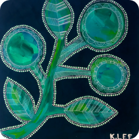 Karen is emerging artist whose work is influenced aesthetically by her local environment exploration of other environments. She draws on the colour and patterns in nature. All subject matter of the native flora and fauna in her art has elements of aboriginal art symbols, incorporated into the patterns or alone in the design of pieces.